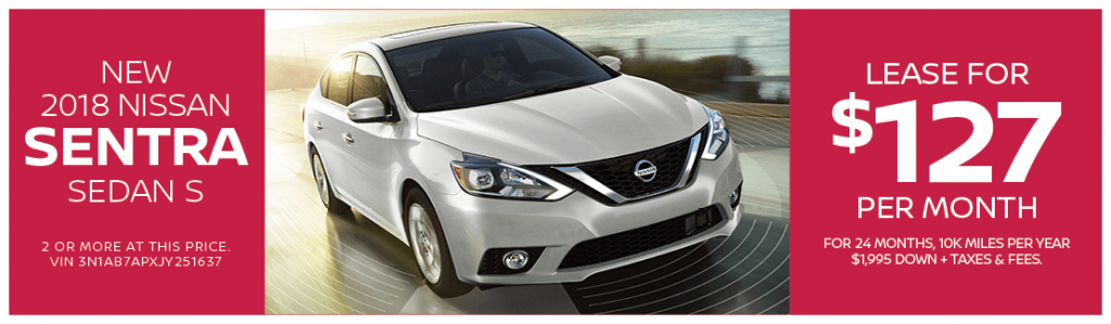 Lease the 2018 Nissan Sentra Sedan S for only $127 per month for 24 months