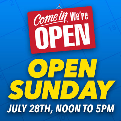 Don’t Miss out on shopping this Sunday, the 28th. We will be open from Noon to 5PM. Click here to view our current inventory. Schedule your test drive today!