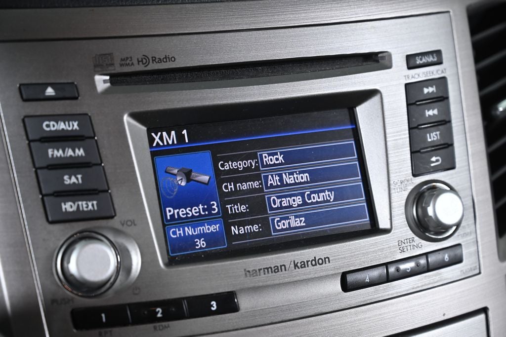 - Radio: AM/FM Stereo HD Radio w/Single Disc CD -inc: harman/kardon 440 watt amplifier and speaker system, 9 speakers (includes subwoofer), MP3/WMA capability, 4.3" LCD display screen, Radio Broadcast Data System (RBDS), Bluetooth® audio streaming connectivity, Bluetooth® hands-free phone connectivity, iPod control capability, SiriusXM satellite radio (subscription required), USB port, 3.5mm auxiliary input jack, rear glass audio antenna and roof mounted satellite antenna in body color