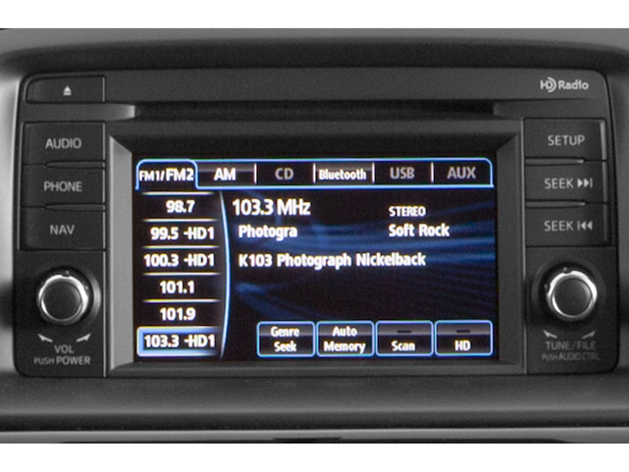 - Radio: AM/FM/CD/HD Modular Audio System w/6 Spkrs -inc: Automatic Level Control (ALC), MP3 capability, digital clock, audio menu voice-command, auxiliary audio input jack, Bluetooth® hands free phone and audio, E911 automatic emergency notification, Pandora internet radio compatibility, radio broadcast data system program information, satellite radio-compatible audio system (requires additional dealer-installed hardware), SMS text message audio delivery and reply and USB audio input
