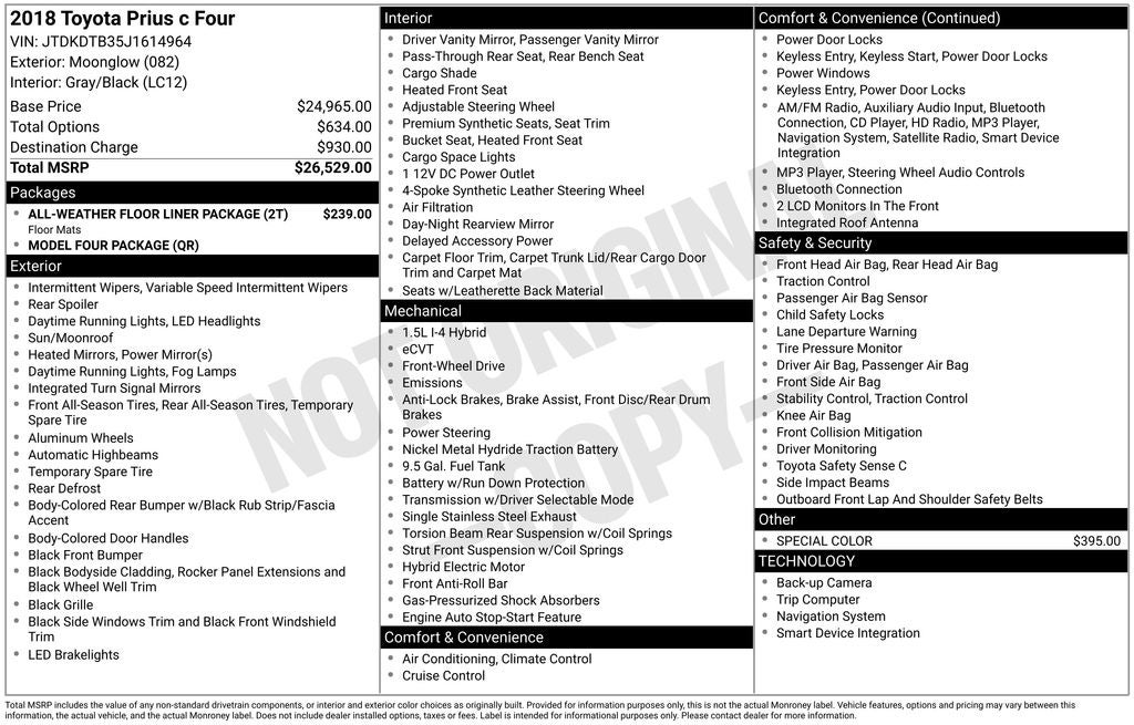 2018 Toyota Prius c Four
