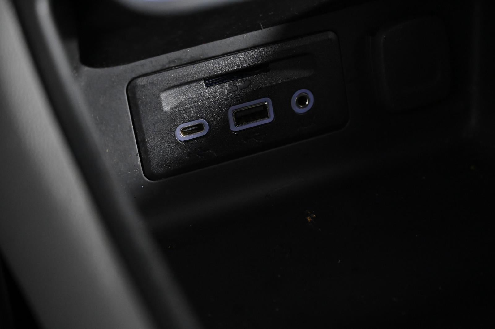 - USB data ports, 2, one type-A and one type-C includes SD Card Reader, auxiliary input jack, located within front center storage bin