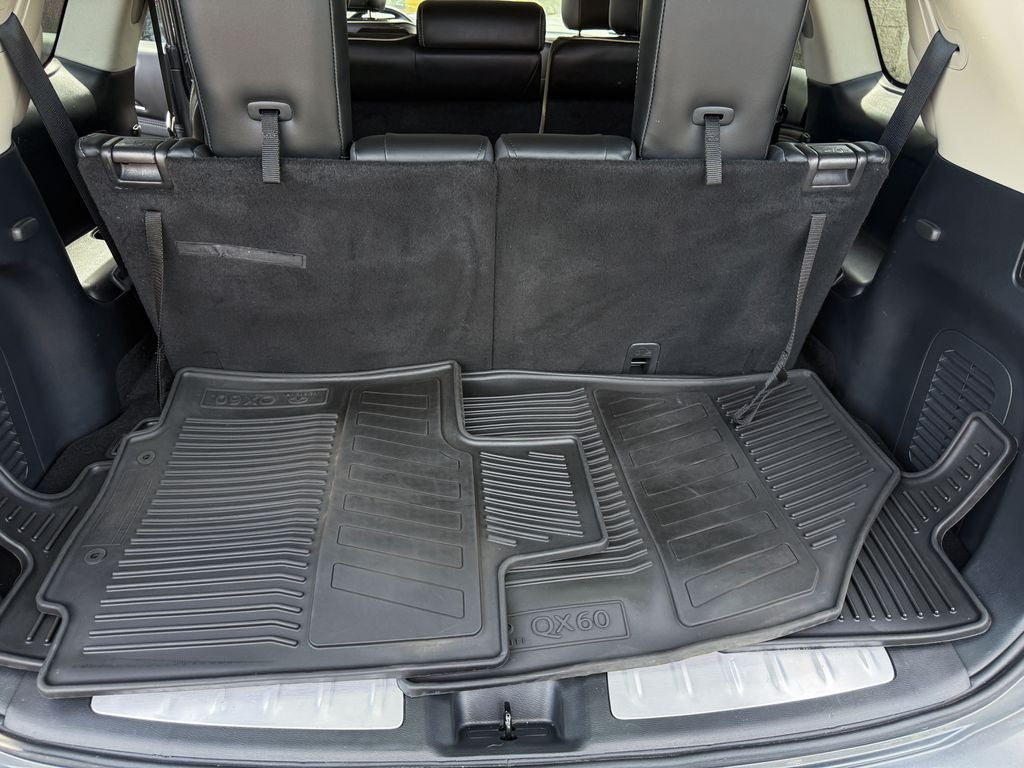 SUNROOF/MOONROOF, LEATHER SEATS, 3RD ROW SEAT, BOSE AUDIO SYSTEM, BLIND SPOT MONITORING / BLIND SIDE ALERT / BLIND SPOT / BLIS, VOICE ACTIVATED NAVIGATION, NAVIGATION / GPS / NAV, INTELLIGENT AROUND VIEW MONITOR / REARVIEW CAMERA / BACK UP CAMERA / REVERSE CAMERA / CAMERA, APPLE CARPLAY / ANDROID AUTO / CARPLAY, HEATED SEATS / WARMING SEATS / SEAT WARMERS / SEAT HEATERS / WARM SEATS, Bluetooth® / HANDSFREE / STREAMING MUSIC / STREAMING AUDIO / PHONE SYSTEM / WIRELESS CALLING, FORWARD COLLISION / COLLISION AVOIDANCE SYSTEM / COLLISION MITIGATION SYSTEM / PRE CRASH SYSTEM, PUSH BUTTON START / KEYLESS START / INTELLIGENT KEY / SMART KEY / DIGITAL KEY, AWD, AM/FM radio: SiriusXM, Around View Monitor w/Moving Object Detection, Essential Package, Front & Rear Sonar System (2FR/2RR), Garage door transmitter: HomeLink, Heated steering wheel, Illuminated Kick Plates (IKP), INFINITI InTouch w/Navigation & InTouch Services, Leather-Appointed Seat Trim, Power Liftgate, Rain-Sensing Front Windshield Wipers, Voice Recognition for Navigation Functions, Wheels: 18 Triple 5-Spoke Aluminum-Alloy.