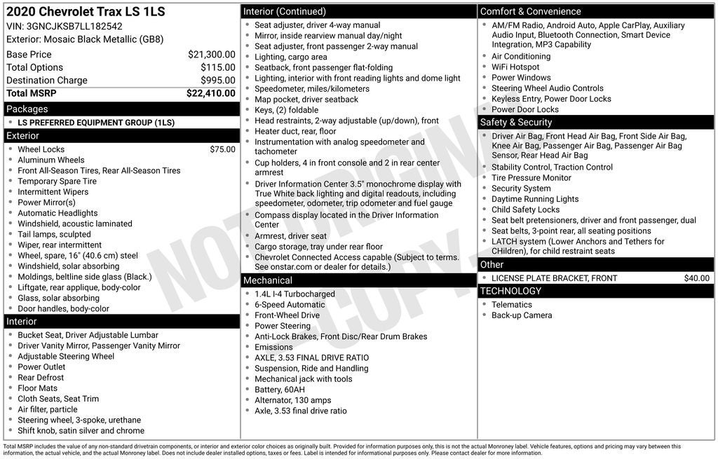 - Vehicle Name: Chevrolet Trax