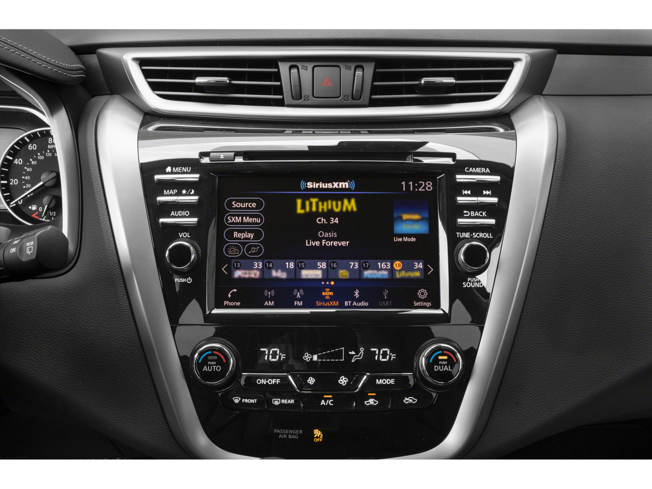 - Radio: AM/FM/CD/MP3/WMA Audio System -inc: Bose premium audio system w/11 speakers plus dual driver subwoofer, NissanConnect services powered by SiriusXM, NissanConnect w/navigation featuring Apple CarPlay and Android Auto, Nissan door to door navigation w/3D building graphics and satellite imagery, connected navigation features including online POI search, door-to-door and online premium traffic information, SiriusXM Travel Link (weather, fuel prices, movie listings, stock info, sports and parking), SiriusXM Traffic, auxiliary audio input jack, SiriusXM satellite radio, A-IVI 8" display, 2 front illuminated USB connection ports (1 type-A, 1 type-C) for iPod interface and other compatible devices, Bluetooth® hands-free phone system, streaming audio via Bluetooth®, hands-free text-messaging assistant, Siri Eyes Free and 2 rear illuminated USB charge ports (1 type-A, 1 type-C)