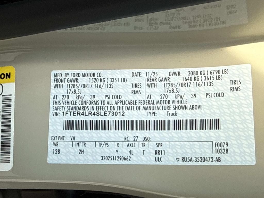 - Front Tire Size: LT285/70SR17
