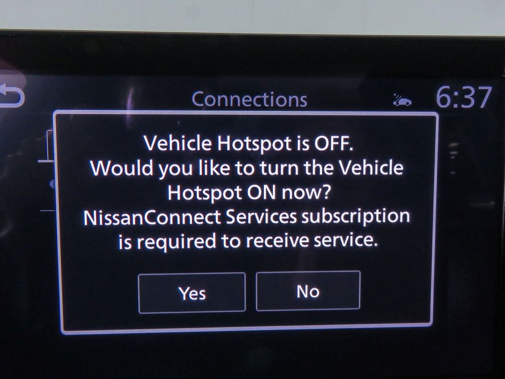 - NissanConnect w/6 Speakers -inc: 2 tweeters, Apple CarPlay, Android Auto, 8" color touch screen display, 2 front USB type-C, Wi-Fi hotspot and NissanConnect Services powered by SiriusXM